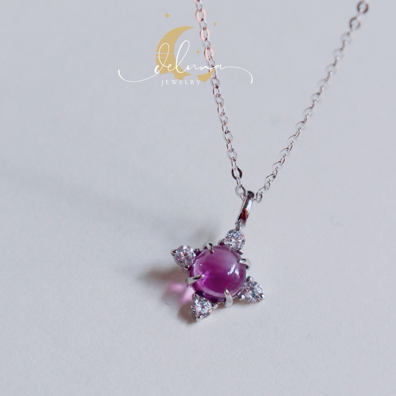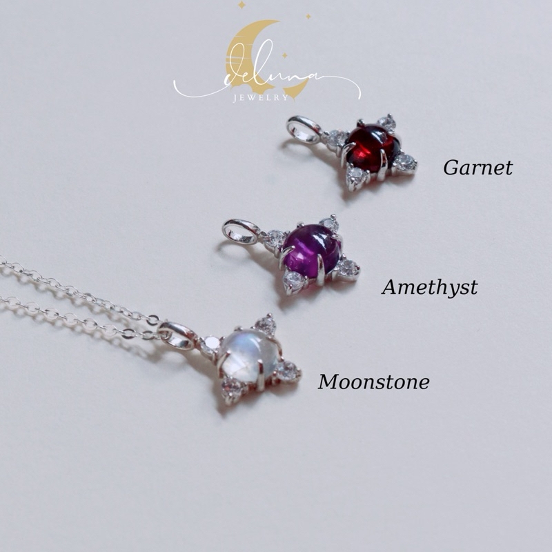 Chất Liệu: Được làm thủ công từ bạc 925 và đá Thạch Anh Tím, Garnet và Moonstone
