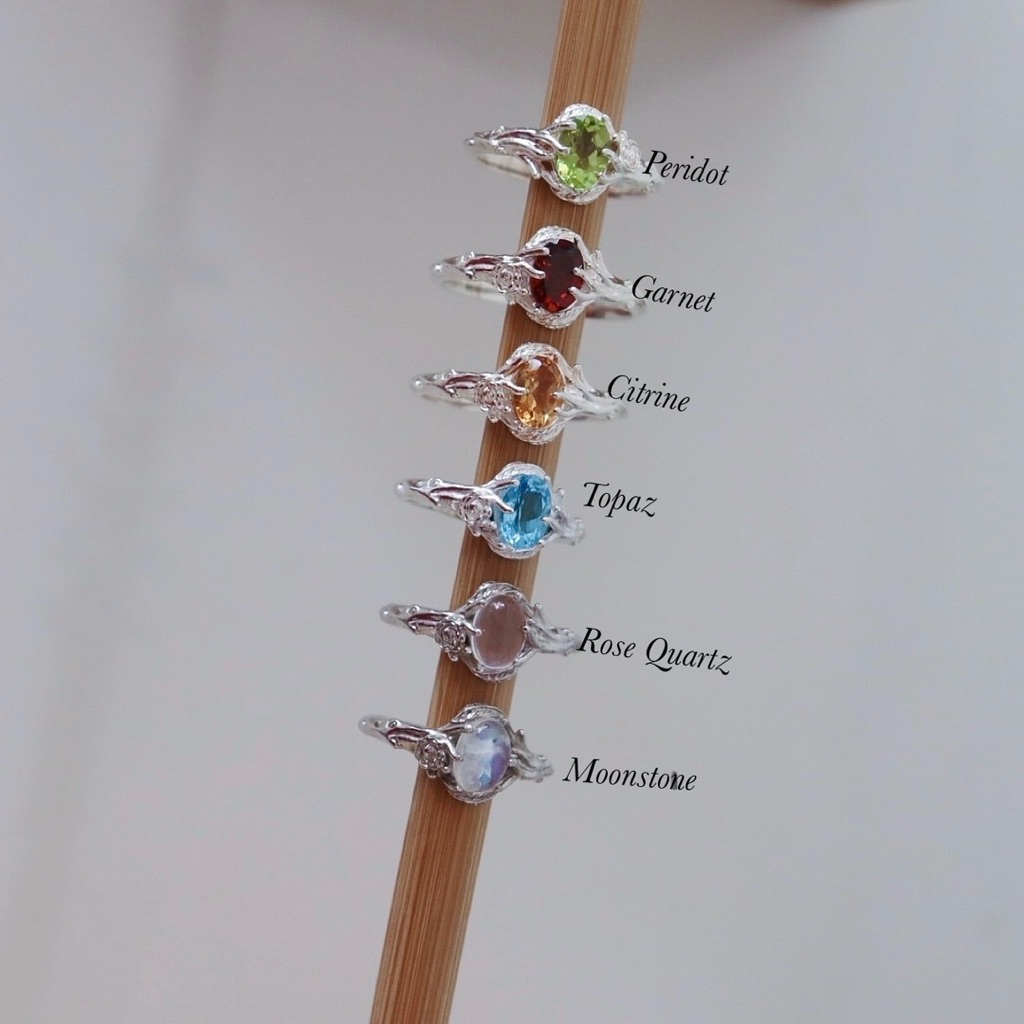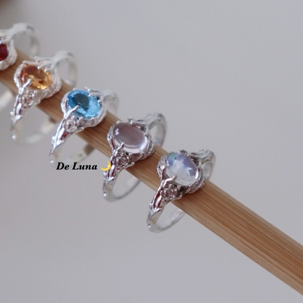 Chất Liệu: Được làm thủ công từ bạc 925 và đá Topaz/ moonstone/ garnet/ peridot/ thạch anh hồng/ citrine