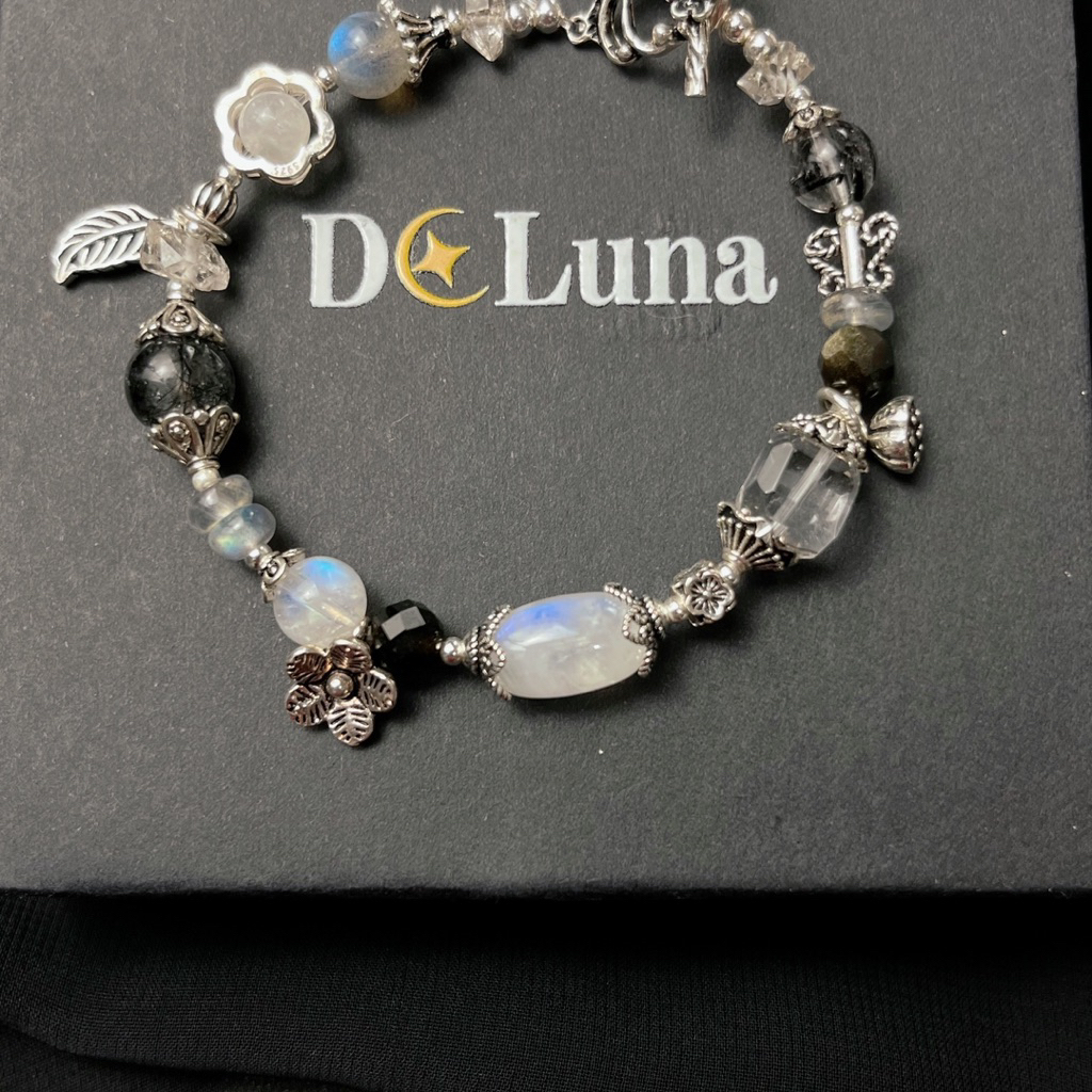 Chất Liệu: Được làm thủ công từ bạc 925 và đá Thạch Anh Tóc Đen, Thạch Anh Trắng, Moonstone, Moonstone, Labradorite, Herkimer, Obsidian.