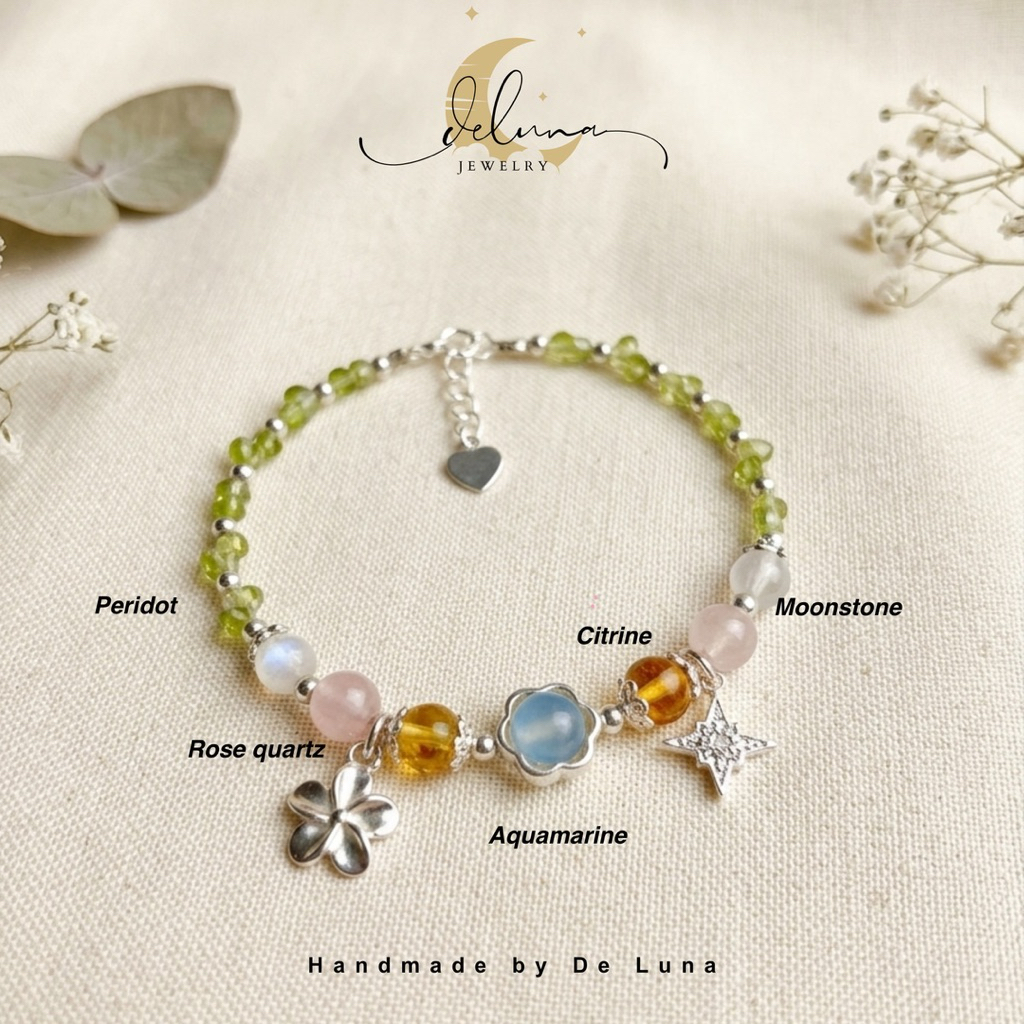 • Đá Peridot, Thạch Anh Hồng, Aquamarine, Moonstone và Thạch Anh Vàng